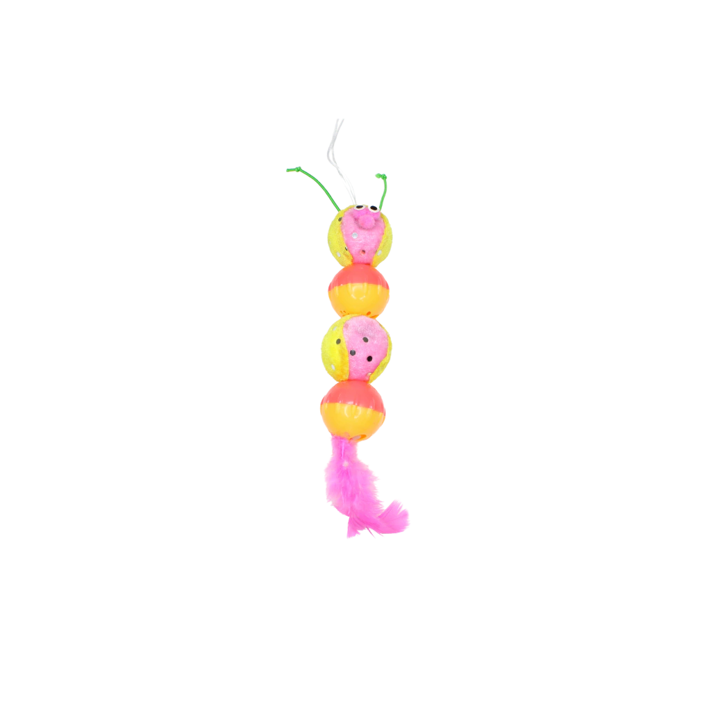 Feita bolinha de plastico com Guizo dentro e bolinhas de pelucia presas num elastico que fazem a centopeia aumentar e diminuir!!!