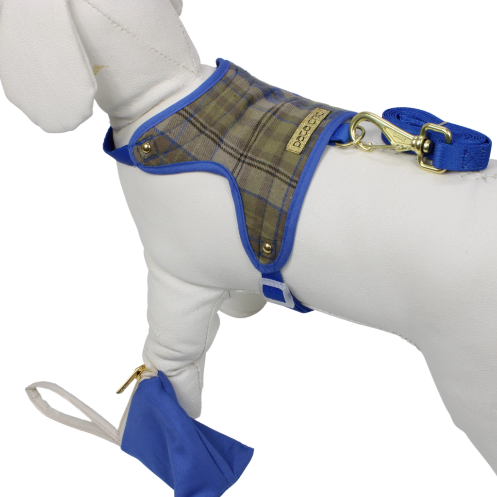 Peitoral Guia e Bolsinha Pata Chic Xadrez - Cinza